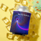 La science nous dit que l'espace est courbé. Et c'est ainsi. Image fractale multicolore de boucles concentriques superposée à un arrière - plan étoilé. Ajoutez votre propre texte.