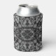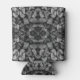 Can Cooler Koozie Sleeve printed with a Cut Tree Logs Stacked Together Black & White Photo mixed media single version and mirrored geometric repeating pattern graphic design image by TheFabricSeal at Zazzle #ZazzleMade https://www.zazzle.com/store/thefabricseal