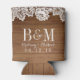 Ce mariage rustique personnalisé peut refroidir avec la phrase "Avoir et tenir pour garder votre boisson froide" sur un arrière - plan en bois de grange en détresse bordé d'élégante dentelle blanche. Customisez l'autre côté avec vos initiales, noms et date mariage.