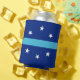 Can Cooler avec le drapeau d'Anaheim, Californie. Un drapeau bleu avec six étoiles blanches et une bande azurée