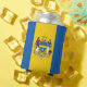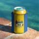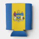Can Cooler avec le drapeau de la ville de Philadelphie, Pennsylvanie; drapeau avec trois bandes verticales de bleu et jaune avec les armoiries de la ville au centre