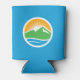 Can Cooler avec un design avec le drapeau de Provo, Utah. Un drapeau bleu avec le logo de Provo City au centre. Le logo représente le lac de l'Utah et les sommets de montagne avoisinants avec le soleil levant en arrière - plan