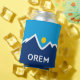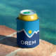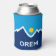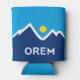 Can Cooler avec un design avec le drapeau d'Orem, Utah. Un drapeau bleu, blanc et jaune avec des sommets de montagne et le soleil au centre