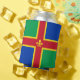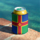 Peut refroidir avec design avec un drapeau du comté historique de Lincolnshire, en Angleterre, Grande-Bretagne; drapeau vert et bleu avec croix rouge et jaune et une Fleur-de-Lis dans le centre