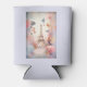 Can cooler with a stylized Eiffel tower image surrounded by pretty butterflies and delicate garden flowers.