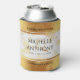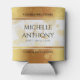 Célébrez le 3ème anniversaire du mariage en cuir avec cet élégant peut refroidir! Un élégant lettrage noir avec des confettis hexagonaux dorés sur un luxueux arrière - plan en cuir blanc bordé d'une feuille d'or apporte une touche mémorable à cette occasion spéciale et à ce jalon. Customisez avec les noms des couples, les dates du mariage et les messages de félicitations. Reverse affiche un design identique. Utiliser tel quel, ou remplacer par une photo du couple. Design © W.H. Sim. Voir plus sur zazzle.com/expressionsoccasions