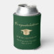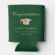 Toast le diplômé à leur fête de fin d'études avec ce vert élégant peut refroidir avec un casquette de grade d'or, "Félicitations" dans un scénario classique et le nom du diplômé, l'école et l'année de classe dans la typographie moderne.