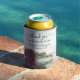 Ces magnifiques refroidisseurs de canettes sont une façon amusante et réfléchie de remercier vos invités mariages. Elles présentent une belle décoration avec des lettres de script élégantes et un seul rose à long tige poussiéreux ou rose rose mauve allongé sur son côté réfléchissant dans une piscine d'eau. La légende dit : Merci de célébrer avec nous ! Il y a de la place pour les noms du couple et la date du mariage ci-dessous.