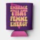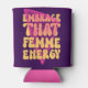 Restez rafraîchis et responsabilisés avec le glacière de boisson **"Embrace That Femme Energy"** ! Doté d'une typographie audacieuse, ce design célèbre la force et la beauté de l'énergie féminine. Parfait pour garder vos boissons cool tout en faisant une déclaration, c'est l'accessoire idéal pour toute personne qui éveille confiance et fierté dans leur féminité.
