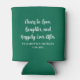 Célébrez votre journée spéciale avec ce mariage magnifiquement conçu peut refroidir avec l'expression sincère "Cheers to Love, Laughter, and Happily Ever After." Cette faveur personnalisable inclut les noms du couple et la date du mariage, ce qui en fait le gardien idéal pour les clients. Avec une police de caractères élégante et un élégant arrière - plan vert émeraude, cette pochette de boisson ajoute une touche d'élégance à tout mariage, fête de fiançailles ou fête d'anniversaire. Cet accessoire mariage charmant et fonctionnel garde les boissons froides tout en créant des souvenirs durables.