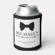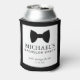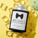 Protège-canette pour enterrement de vie de garçon avec noeud papillon noir et police classique et moderne.