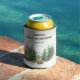Can Cooler avec pinède et feu de camp. Tout est placé sur un arrière - plan blanc et vert clair. Idéal pour votre prochaine réunion de famille, anniversaire ou tout événement sur le thème de la nature. Personnalisez facilement tout le texte. - Kate Eden Art.
