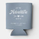 Donnez un toast mariage et un cadeau souvenir amusant à vos invités mariages avec cette coutume bleu poussiéreux peut refroidir avec "Let The Adventure Begin" écrit dans un mélange de typographie blanche simple et un script blanc rétro, un coeur avec une flèche, et vos noms et date mariage.