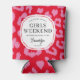 Célébrez la future mariée et ses derniers jours de liberté de célibataire avec des refroidisseurs de canette personnalisés amusants et flirtants qui présentent un motif de taches d'impression de léopard en rouge et rose girly et un texte de nom et de titre personnalisé de l'autre côté. La typographie chic est facile à personnaliser avec les détails de votre événement et à personnaliser pour chaque invité en tant que cadeau de bienvenue ou faveur de fête.