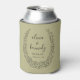 Feuille minimale | Botanique Wreath Custom Wedding Can Cooler - Can Cooler est customisé avec les noms de la mariée et du marié, la date mariage et la ville et l'état du mariage dans une police moderne de calligraphie. Affiché en vert sauge, mais vous pouvez facilement changer l'arrière - plan pour correspondre à votre thème mariage.