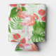 Aquarelle design motif avec des fleurs et des oiseaux flamands, la monstère et les feuilles de palmiers.