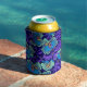 Can Cooler avec le design textile de William Morris Purple et Blue Flowers (1834-1896). De belles fleurs décorent un décor violet foncé. Un cadeau merveilleux pour les amateurs d'art victorien.