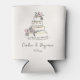 Ce refroidisseur de canette présente un fond de crème avec un croquis de gâteau floral rose dans un style minimaliste et élégant. La palette de crème et de rose se marie à merveille avec les noms et la date écrits à la main pour un cadeau de mariage personnalisé. Personnalisez en utilisant le modèle de texte modifiable avec le nom des mariés et la date de la célébration. Un détail simple mais ludique pour les sacs de bienvenue, les dîners de répétition ou les configurations de bar de réception.
