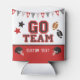 Célébrez le football et le sport avec cette bière et soda festives personnalisés peut refroidir. Le glacière a des étoiles rouges et noires, une bannière de drapeau de fête, le texte Go Team, des footballs marron et noirs, des casques de football, et un endroit pour votre texte personnalisé. Ce glacière ferait un grand ajout à une fête de football et ce serait aussi un grand cadeau pour un fan de football !