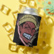 A colored, cartoonish sketch of a mean mugged black man wearing a yellow beanie. He's gnashing on his diamond plated teeth.
