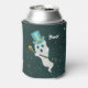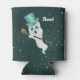 Ce glacière en boîte ou en bouteille a un fantôme blanc habillé flottant dans un ciel étoilé portant un chapeau bleu et tenant une canne noire finement dorée avec un crâne doré. Customisez le texte Boo avec le modèle.