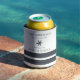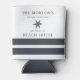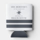 Le Nautical peut refroidir présente un style côtier d'étoiles de mer et de rayures. Personnalisez le texte personnalisé avec un nom de famille et maison de plage (ou autre titre) avec l'année établie et l'emplacement. Couleurs bleu marine et blanc de la main de la main.