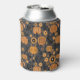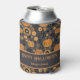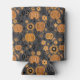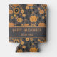 A cute and pretty Happy Halloween can cooler featuring pumpkin and floral patterns in orange and black, perfect for families looking for fun and modern ways to celebrate Halloween this fall.