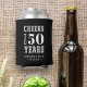 Commémorez un anniversaire spécial avec ces magnifiques faveurs personnalisées de fête peuvent refroidir. Le design moderne en noir et blanc présente des "encouragements à XX ans" en caractères blancs gras. Ajoutez l'occasion et la date ci-dessous pour une tenue unique de fête d'anniversaire. Exemple illustré pour une fête de 50e anniversaire.