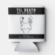Refroidisseurs de canette de fête de bachelor / bachelorette en noir et blanc "jusqu'à ce que la mort nous sépare". Design de mariée et de marié squelette idéal pour un événement de mariage sur le thème d'Halloween. Personnalisez le texte et les couleurs pour votre événement.