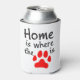 Un jeu de mots avec la citation "Home is where the heart is", ceci peut refroidir a les mots "Home is where the [photo empreinte de patte] is", avec l'image empreinte de patte en rouge, représentant le "coeur". Le cadeau idéal pour les amoureux des animaux de compagnie.