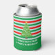 C'est un grand cadeau à offrir à vos invités lors de votre fête annuelle ou de votre famille de pull de Noël moche se réunir. Un glacière de bière amusant avec le texte "Christmas Cheer Commence avec la bière. L'aménagement comprend un sapin de Noël sur un arrière - plan rayé sucre de canne.