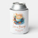 Thème de douche de mariée Love is Brewing - Refroidisseur de canette de mariage pour douche de mariée au café floral bleu.