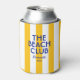 Le Beach Club peut se rafraîchir est parfait pour votre voyage de groupe sur la plage ou se réunir. Bandes de cabane jaune avec lettrage de club de plage bleu vif personnalisé. Personnalisez avec les détails de votre voyage à la plage... année et destination de plage. Parfait pour une plage familiale ou d'amis se réunir ou club de plage bachelorette ou comme souvenir pour un voyage passé. Accessoires correspondants disponibles dans The Beach Club Sorrento Yellow Cabana Stripe Collection.