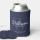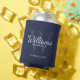 Ajoutez une touche personnelle à votre mariage avec des groomsmen personnalisés peut refroidir. Ce peut refroidir caractéristiques personnalisées groomsman's nom dans le style de police de script classique blanc avec des détails mariages dans le style de police de serif classique blanc et monogramme dans le style de police de serif classique bleu marine clair comme arrière - plan, sur arrière - plan bleu marine. Parfait aussi pour le meilleur homme, père de la mariée, porteur de bague et plus.