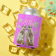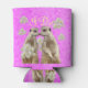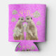 Sur cette photo de ce glacière stubby sur un arrière - plan rose sont deux Meerkats amoureux de prendre leurs voeux mariages.