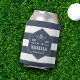 Personnaliser cette marine et rayée blanche peut refroidir avec son nom et une année spéciale (comme année de naissance ou année de retraite) afin qu'il puisse rebondir au 19ème trou dans le style. Le design sur le thème du golf présente un logo hexagonal portant une balle de golf et des clubs de golf croisés.