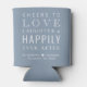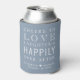 Un cadeau de faveur amusant pour vos invités mariages, la fête de mariée et les groomsmen. Ce bleu poussiéreux peut refroidir les caractéristiques "Cheers to Love Laughter & Happily Ever After Party" dans un mélange de typographies blanches modernes et élégantes, vos prénoms et la date mariage.