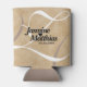 Ajoutez une touche de charme vintage à votre journée spéciale avec ces refroidisseurs rustiques mariage, qui disposent de serif blanc et de lettres de script sur un burlap (simulé) taché et passé / toile / lin brut / arrière - plan de texture papier kraft. Customisez avec les noms des jeunes mariés, une initiale ou un monogramme pour le nom de famille et la date du mariage. Reverse affiche un design identique. Une grande faveur pour les clients, et un merveilleux souvenir pour des thèmes mariages rustiques ! Design © W.H. Sim. Voir plus sur zazzle.com/expressionsoccasions