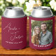 Célébrez votre mariage avec cet élégant refroidisseur de bougies bordeaux avec une photo personnalisable et un design moderne. Parfait pour l'automne, l'hiver et les mariages rustiques, ce style viticole profond est à la fois un glacière pratique pour boire un verre et un gardien élégant pour vos invités. Personnalisez avec votre photo, vos noms, votre date et votre emplacement pour créer une faveur de mariage significative que les cravates s'intègrent parfaitement dans votre palette de couleurs bordeaux.