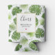 Mariage peut refroidir avec un joli motif composé de feuilles tropicaux verts. Design exotique et élégant. Un carré blanc avec une fausse bordure en feuille d'or superposée avec votre texte à l'intérieur.