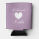 Mariage personnalisé peut refroidir pour les demoiselles d'honneur. Le lavande lilas lavande mauve et blanche mariage peut refroidir avec le coeur mignon. Design classique avec des lettres de nom ou monogramme. Symbole d'amour mignon. Faites-en un avec pour l'épouse d'équipe, la demoiselle d'honneur, la femme d'honneur, la mariée, le matron d'honneur, la mère de la mariée etc. Créez votre propre cadeau de mariage / souvenir pour les invités à votre fête. Design de porte-boissons à thème romantique. Parfait pour les boissons alcoolisées comme la bière. Également disponible pour les bouteilles. Élégante typographie de script. Glacière douillette sur mesure pour mariage chic, douche nuptiale fantaisie, soirée bachelorette amusante etc.