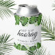 Un fun cooler de canette sur le thème tropical avec des feuilles de palmier vertes et de monstera. Caractéristiques « Sip Sip Hourra » en écriture élégante, parfait pour les célébrations de mariage. Personnalisable avec les noms et la date. Thème Jungle Tropical Feuilles de Monstera ou de Palmier Cooler de canette de mariage personnalisé Sip Sip Hourra. Conçu et illustré avec amour par Kristine Lee Designs www.kristineleedesigns.com
