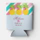 Mariée à être Ananas peut refroidir est un koozie tropical pour votre fête de mariage. La moitié supérieure est composée de bandes diagonales rose et verte avec trois ananas jaunes. Le et la moitié inférieure affiche l'arrière - plan bleu. L'information de la mariée est en police rose personnalisable avec une fleur rose séparant son nom de sa date mariage. Commandez dès aujourd'hui !