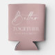 Ces refroidisseurs/koozies rose pâle personnalisés sont parfaits pour un mariage, une fête de fiançailles, une douche nuptiale ou un dîner de répétition. Le design présente la couleur rose tendance avec des polices simples et modernes. Customisez-les avec vos noms et la date de l'événement pour en faire un