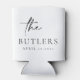 Ces refroidisseurs/koozies noirs et blancs personnalisés sont parfaits pour un mariage, une fête de fiançailles, une douche nuptiale ou un dîner de répétition. Le design présente la palette de couleurs noir et blanc tendance avec des polices simples et modernes. Customisez-les avec vos noms et la date de l'événement pour en faire un