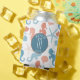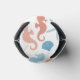 Le corail de Tangerine et le bleu cerulean sont les couleurs de ce joli thème nautique peut refroidir. Des images d'hippocampes, de coquillages et d'étoiles de mer constituent le motif répétitif. Au centre se trouve une bannière en cercle bleu assortie avec votre monogramme en blanc. Au-dessus et au-dessous du monogramme sont des champs de texte personnalisés, qui disent "BEACH LIFE" dans l'exemple. Tout est posé sur un arrière - plan blanc.