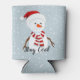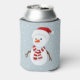 Snowman Design Can Cooler avec du texte personnalisable. Quoi de mieux pour garder votre boisson cool qu'un bonhomme de neige gelé sur un arrière - plan bleu neigeux..