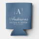Gardez vos boissons élégantes et fraîches avec ce refroidisseur de canette de boisson gazeuse personnalisé pour couple de mariage moderne en bleu poussiéreux avec texte blanc gras. Parfait pour les mariages, les enterrements de vie de garçon et les célébrations spéciales, ce refroidisseur de canette personnalisé fait un cadeau attentionné pour le marié. Personnalisez avec votre propre texte pour créer un souvenir unique qui allie design moderne et fonctionnalité pratique.