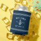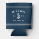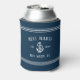 Améliorez vos boissons de bateau avec ces refroidisseurs de canettes personnalisées cool en bleu marine brillant. Le design comprend votre nom de bateau, le registre du navire et l'année établie en lettres blanches, accentuée d'une illustration d'ancre et d'une bande de corde détaillant en haut et en bas.