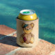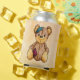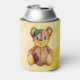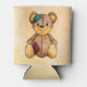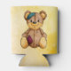 Ours en peluche de poupée d'aquarelle d'aquarelle d'aquarelle orange et jaune avec des taches violettes et bleues, un corps brun et des pieds tans nez et oreilles sur un arrière - plan d'aquarelle orange et jaune.